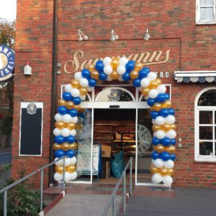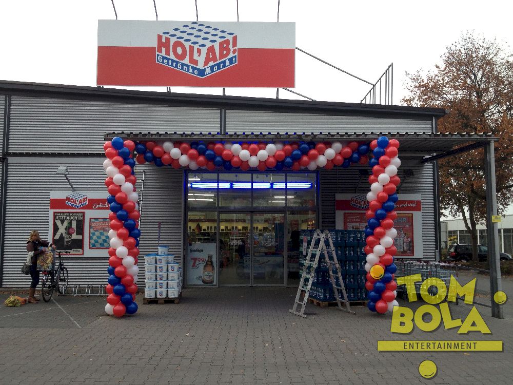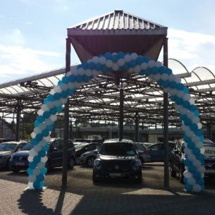 Luftballonbögen sind eine gute Möglichkeit, den Eingang einer neuen Filiale mit Luftballons zu dekorieren sind Ballonbögen. Der Vorteil: Die Luftballon-Girlande braucht nicht an einer Fassade befestigt zu werden. Sie kann frei vor dem Eingang stehen und bewegt sich leicht im Wind. Zwei schwere Stahlplatten oder Sonnenschirmständer halten das Kunstwerk sicher am Boden. Gleichzeitig wird der Focus auf den Eingang oder ein spezielles Objekt gelenkt.
